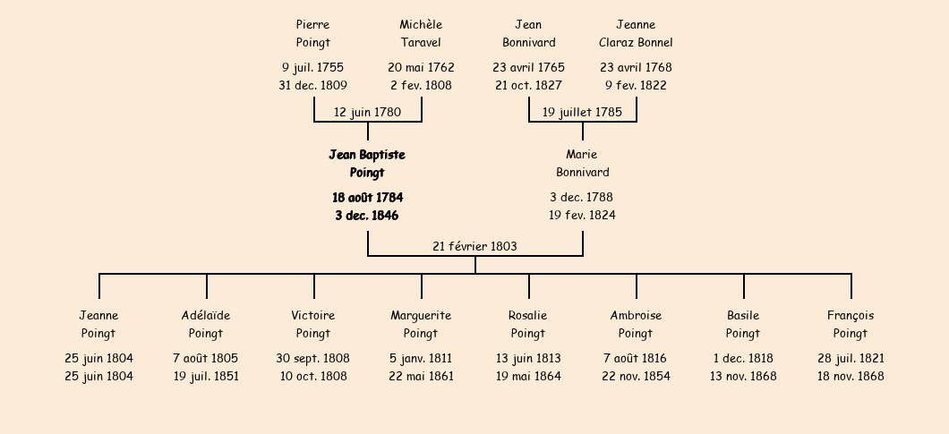 Epoux : Jean Baptiste Poingt, fils de Pierre et de Michèle Taravel |