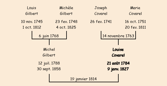 Mère : Marie Covarel | Marraine : Louise Covarel (fille de Pierre) |