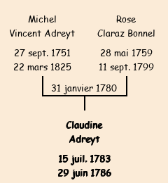 Mère : Rose Bonnel | Marraine : Claudine Bonnel (fille de François) |