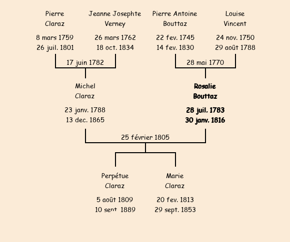 Epoux : Michel Claraz, fils de feu Pierre et de Jeanne Verney |