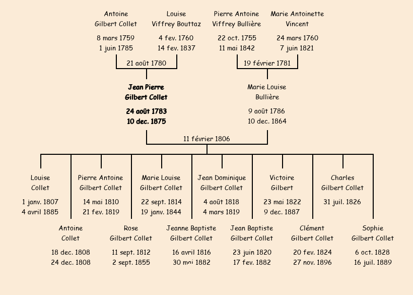 Père : Antoine Gilbert Collet | Parrain : Jean Gilbert Collet (révérend prêtre, fils de Pierre Antoine) |