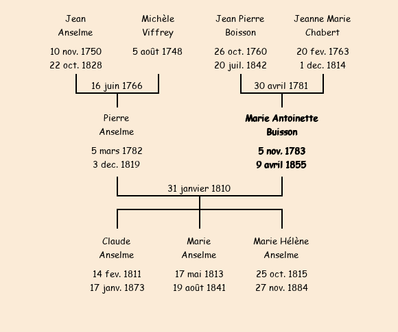 | Epouse : Marie Antoinette Buisson, fille de Jean Pierre et de Jeanne Marie Chabert |