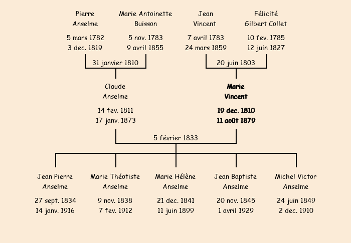 Epouse : Marie Vincent, fille de Jean et de feue Félicité Gilbert Collet |