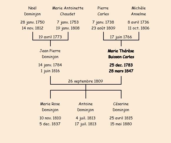 Epouse : Marie Thérèse Buisson Carles, fille de feu Pierre et de Michèle Anselme |