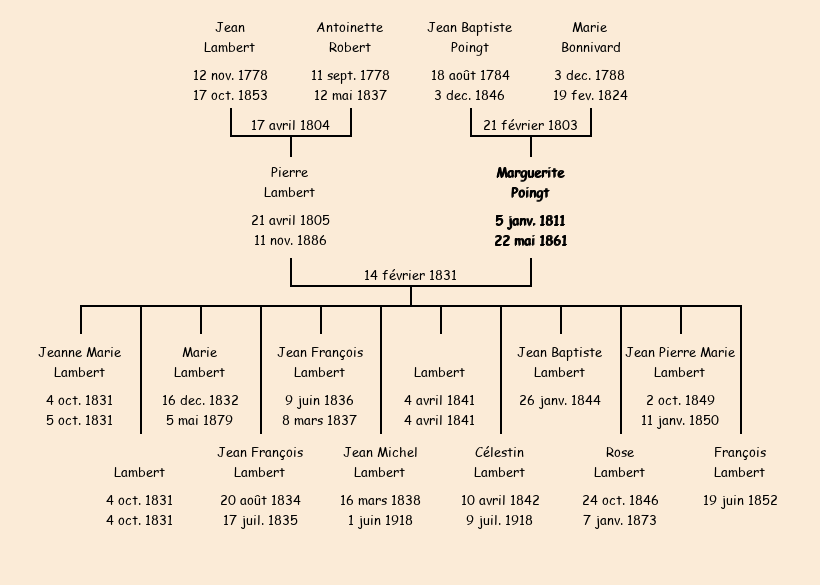 Epoux : Pierre Lambert, fils de Jean et de Antoinette Robert |