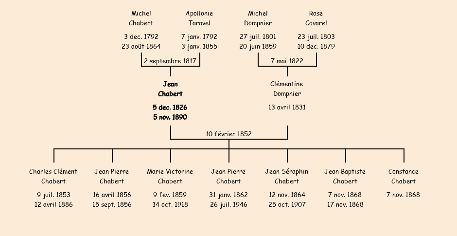 Mère : Apollonie Taravel | Marraine : Jeanne Chabert (fille du parrain) |