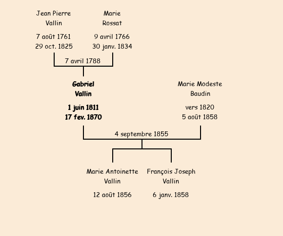 Père : Jean Pierre Vallin, fils de François | Parrain : Gabriel Vallin (frère du père de l'enfant, de Saint Jean de Maurienne) |