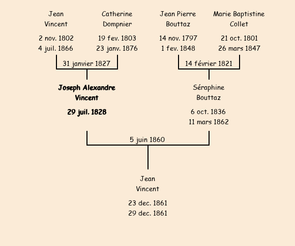 Marié (31 ans) avec Séraphine Bouttaz (23 ans) le 5 juin 1860 à Fontcouverte ![]() |