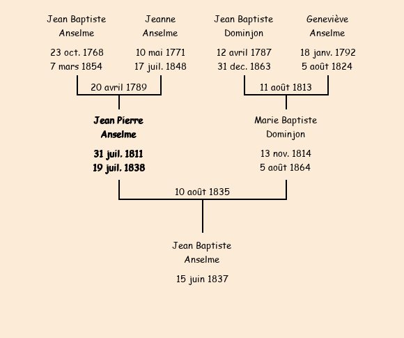 Epoux : Jean Pierre Anselme, fils de Jean Baptiste et de Jeanne Anselme |