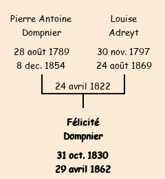 Père : Pierre Antoine Dompnier (décédé, instituteur) |