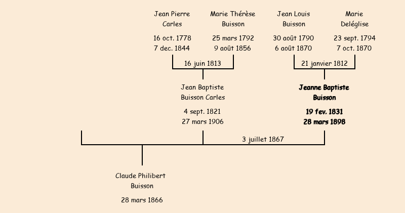 Père : Jean Louis Buisson, fils de Louis | Parrain : Victor Buisson (frère de la baptisée) |