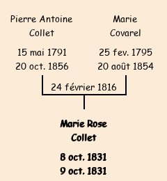 Mère : Marie Covarel, fille de Jean Baptiste | Marraine : Rose Collet (fille de Claude) |