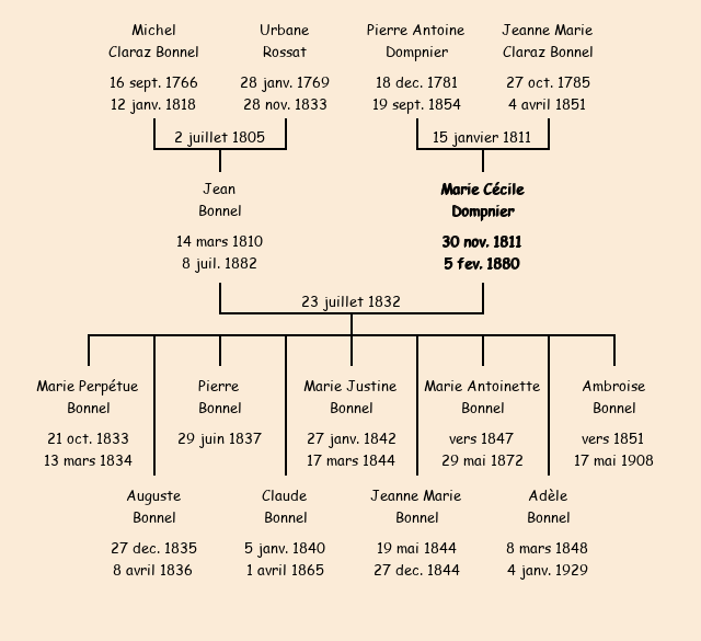 Epouse : Marie Cécile Dompnier, fille de Pierre Antoine et de Jeanne Marie Bonnel |