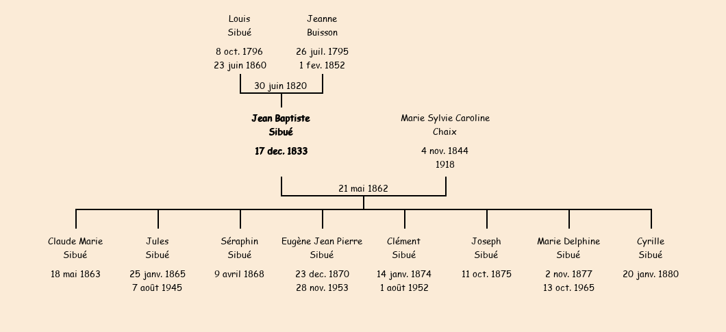Père : Louis Sibué, fils de Claude | Parrain : Célestin Sibué (frère du baptisé) |