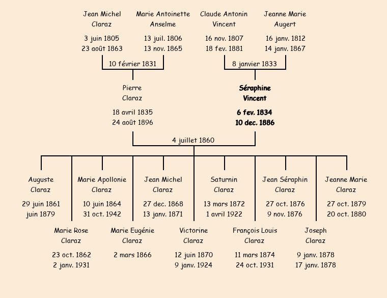 Epouse : Séraphine Vincent (26 ans, a marqué), fille de Claude Antoine (a signé) et de Jeanne Marie Augert |