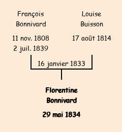 Mère : Louise Buisson, fille de Pierre | Marraine : Florentine Buisson (fille de Jean) |
