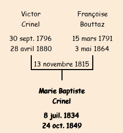 Père : Victor Crinel, fils de Jean Pierre | Parrain : François Dompnier (fils de Jean) |