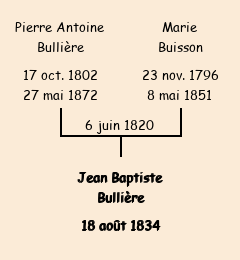 Père : Pierre Antoine Bullière, fils de Jean Pierre | Parrain : Jean Louis Bullière (frère du baptisé) |