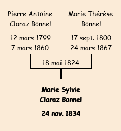 Père : Pierre Antoine Claraz Bonnel, fils de André | Parrain : François Bonnel |