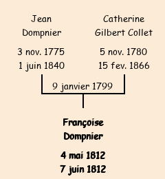 Père : Jean Dompnier, fils de Pierre | Parrain : Pierre Antoine Dompnier (fils de Jean Claude) |