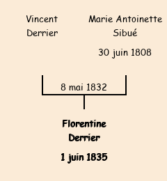 | Père : Vincent Derrier, fils de Jean François (de Saint Pancrace) | Parrain : Louis Sibué (fils de Jean Pierre) |