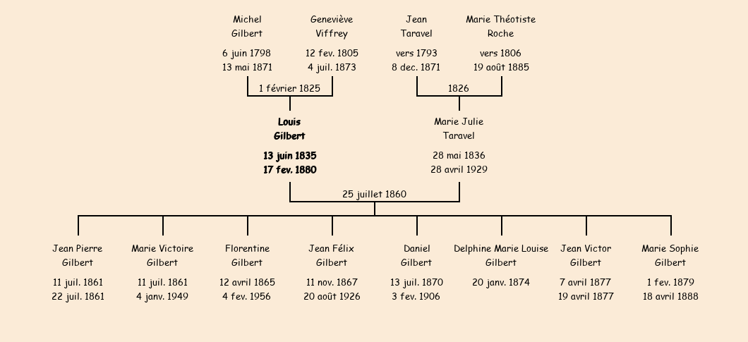 Mère : Geneviève Viffrey, fille de Michel | Marraine : Félicité Gilbert (fille de Louis) |