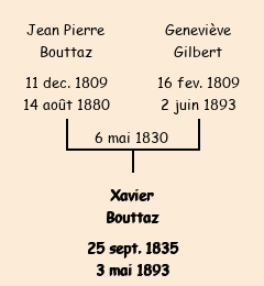 Père : Jean Pierre Bouttaz, fils de Jean Michel | Parrain : Xavier Gilbert (fils de Michel) |