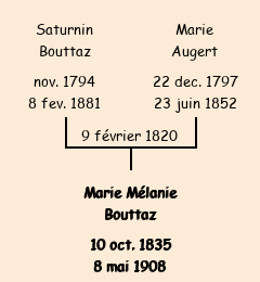Père : Saturnin Bouttaz, fils de Claude | Parrain : Cyprien Bouttaz (frère de la baptisée) |