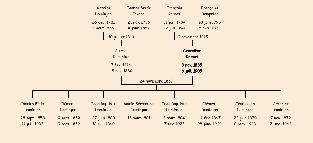 Mariée (22 ans) avec Pierre Dominjon (43 ans) le 24 novembre 1857 à Fontcouverte ![]() |
