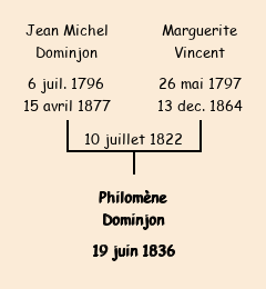 Père : Jean Michel Dominjon, fils de Sébastien | Parrain : Jean Baptiste Dominjon (frère de la baptisée) |