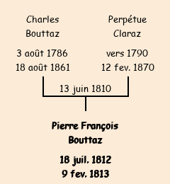Père : Charles Bouttaz, fils de Jean Michel | Parrain : Jean Pierre Bouttaz (frère du père de l'enfant) |