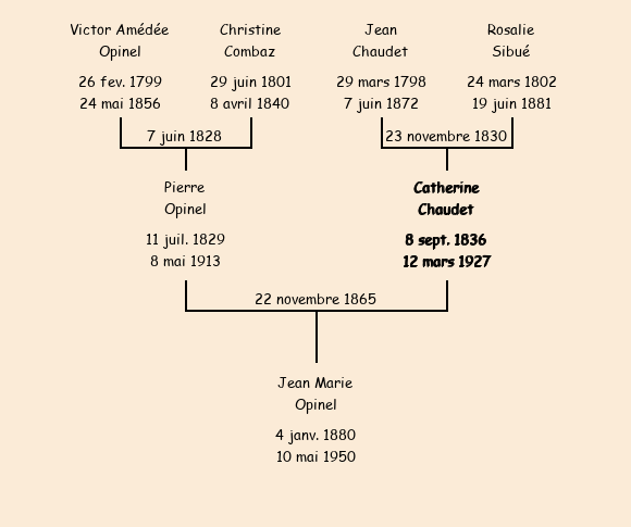 Mariée (29 ans) avec Pierre Opinel (36 ans) le 22 novembre 1865 à Fontcouverte ![]() |