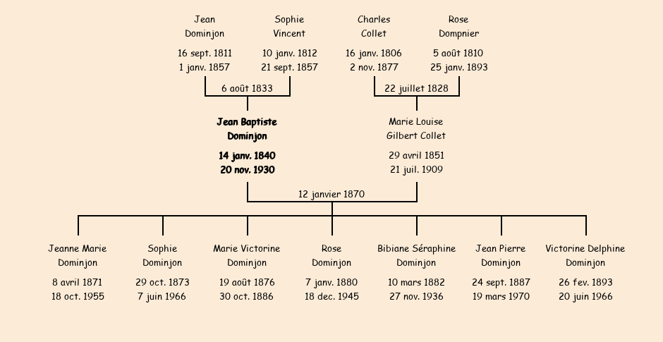 Jean Baptiste Dominjon apparait dans le dénombrement de la population de 1881. |