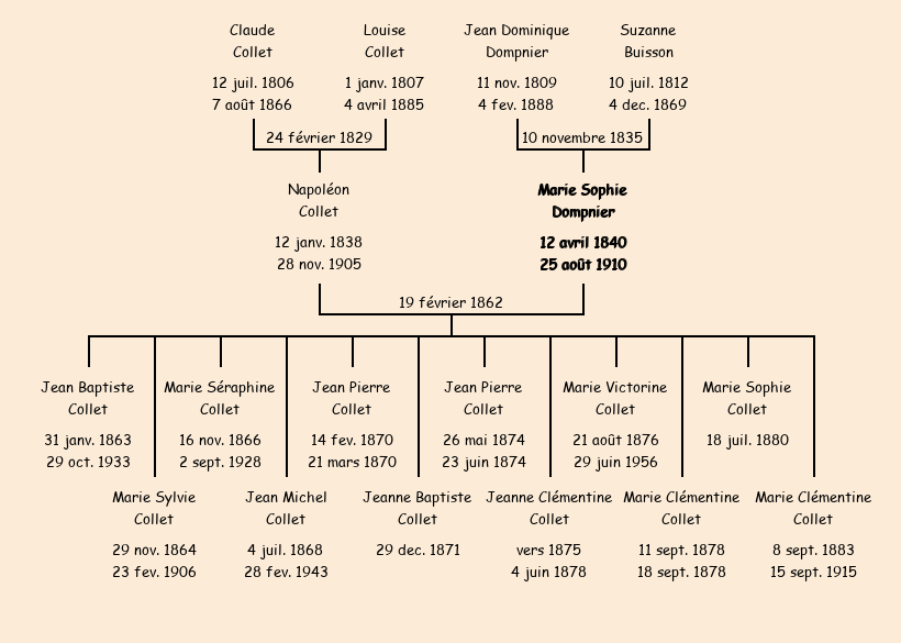Mariée (21 ans) avec Napoléon Collet (24 ans) le 19 février 1862 à Saint-Pancrace |