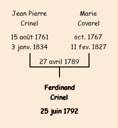 Père : Jean Pierre Crinel, fils de Antoine | Parrain : Jean Crinel (égrège, fils du dit Antoine, frère de la marraine) |