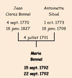 Père : Jean Bonnel, fils de Jean Baptiste | Parrain : Jean Baptiste Sibué |