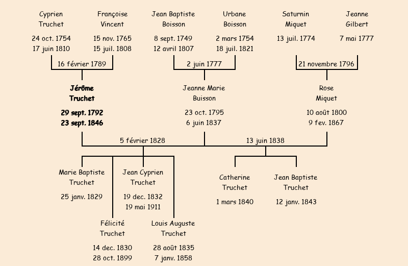 | Epoux : Jérôme Truchet, fils de feu Jean Cyprien et de feue Françoise Vincent |