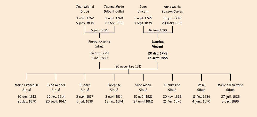 Epouse : Lucrèce Vincent, fille de Jean et de Anne Marie Buisson Carles |