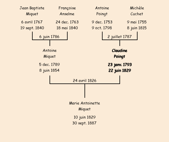 Epoux : Antoine Miquet, fils de Jean Baptiste et de Françoise Anselme |