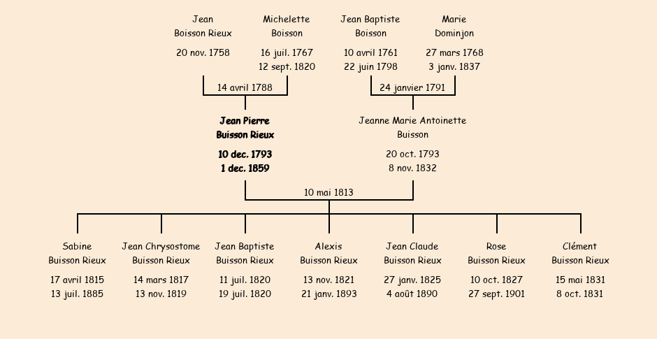 Epouse : Jeanne Marie Antoinette Buisson, fille de feu Jean Baptiste et de Marie Dominjon |
