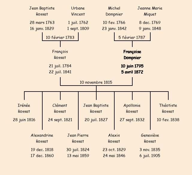 Epoux : François Rossat, fils de Jean Baptiste et de feue Albane Vincent |