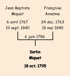 Père : Jean Baptiste Miquet, fils de Claude | Parrain : Sorlin Miquet (fils de Claude) |