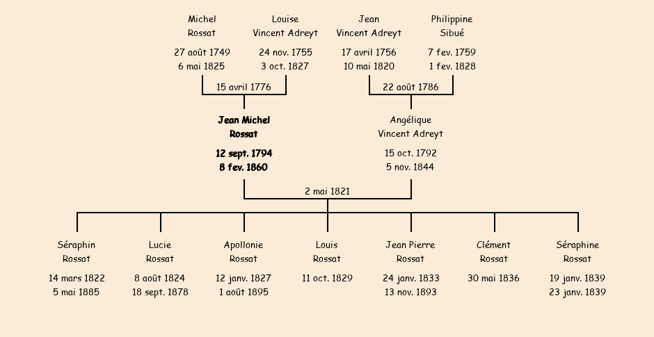 Epoux : Jean Michel Rossat, fils de Michel et de Louise Adreyt |