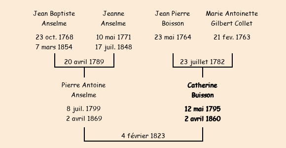 Mariée (27 ans) avec Pierre Antoine Anselme (23 ans) le 4 février 1823 à Saint-Jean-de-Maurienne |