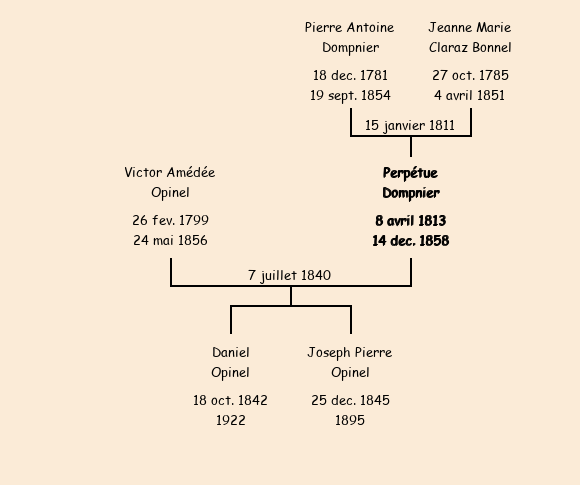 Père : Pierre Antoine Dompnier, fils de François | Parrain : Louis Claraz Bonnel (grand-père maternel) |
