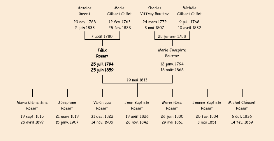 | Epoux : Félix Rossat, fils de Antoine et de Marie Collet |