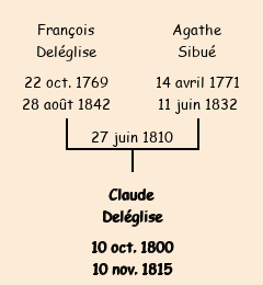 | Père : François Deléglise, fils de Joseph | Parrain : Claude Bonnivard (fils de Jean Baptiste décédé) |