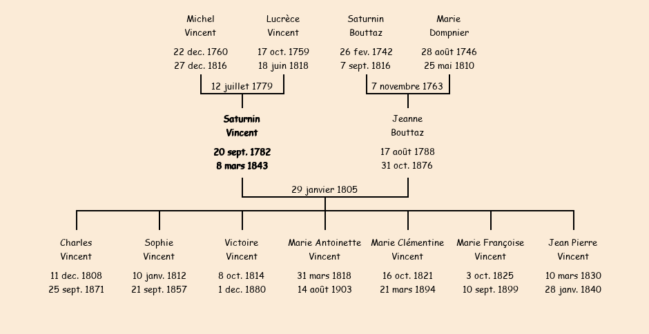 Epoux : Saturnin Vincent, fils de Michel et de Lucrèce Vincent |