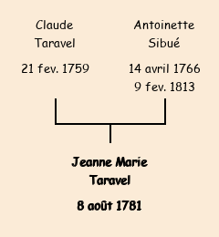 Mère : Antoinette Sibué, fille de Jean Baptiste | Marraine : Agnès (épouse de Louis Taravel) |