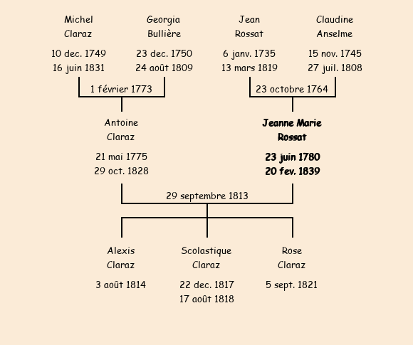 | Epoux : Antoine Claraz (veuf de Catherine Anselme), fils de Michel et de feue Georgina Bullière |